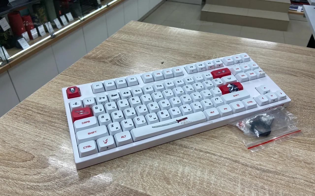 Механическая клавиатура от не без известного бренда, внешне выглядит как новая, дефектов не имеет, в комплекте ключ для снятия клавиш и два Кей Капа.
